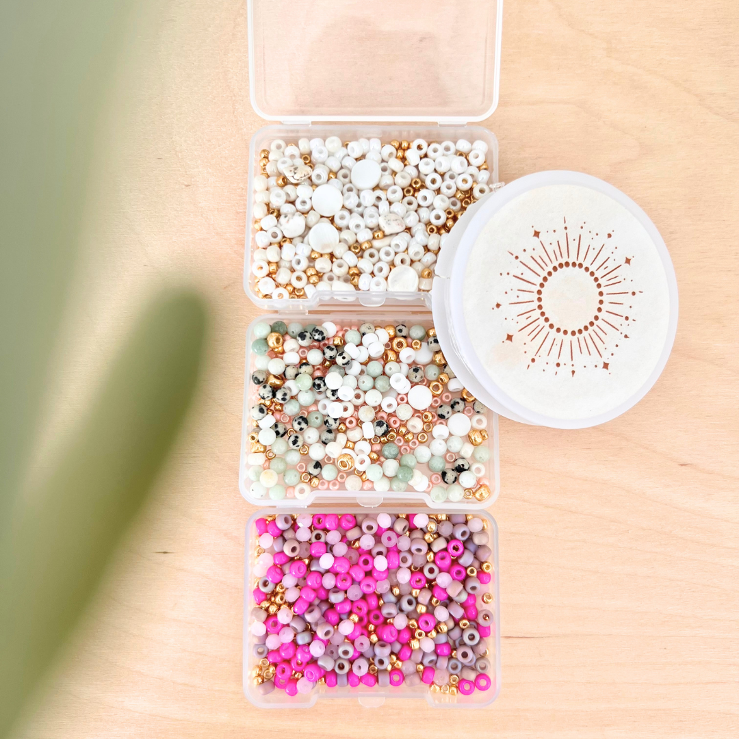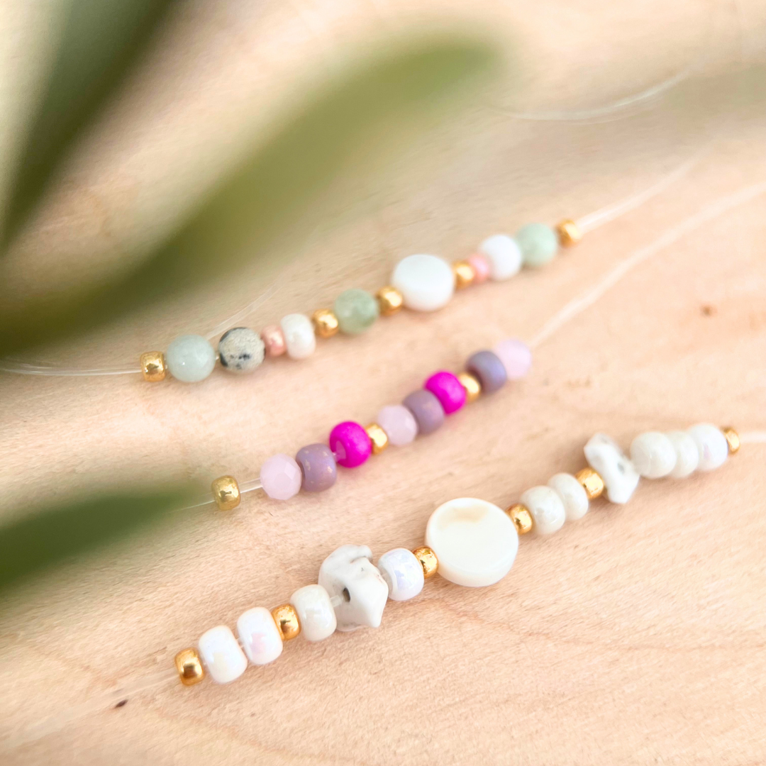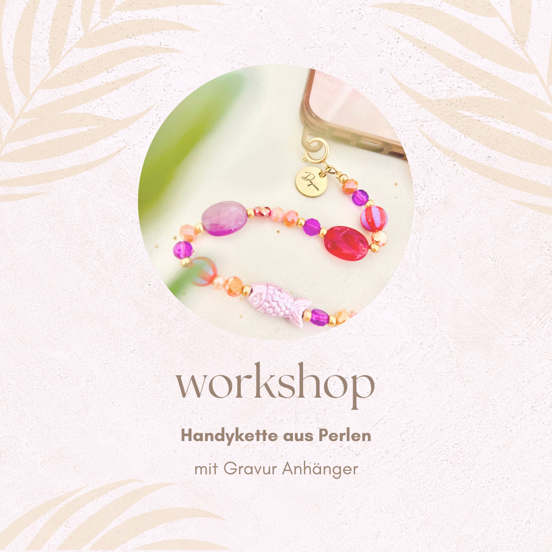 In einem unserer Workshops für Armbänder erwartet dich eine große Auswahl aus über 300 verschiedenen Perlen Variationen, Anhänger und Quasten.