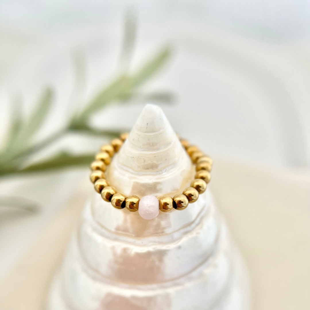 Dieser handmade Perlenring vereint schlichte Eleganz mit hochwertiger Verarbeitung. Die glänzenden Edelstahl-Perlen sorgen für einen stilvollen Look, während die kleine Natursteinperle in Rosa einen zarten Akzent setzt. Der dezente und edle Stil macht diesen Ring zu einem vielseitigen Begleiter für den Alltag oder besondere Anlässe.