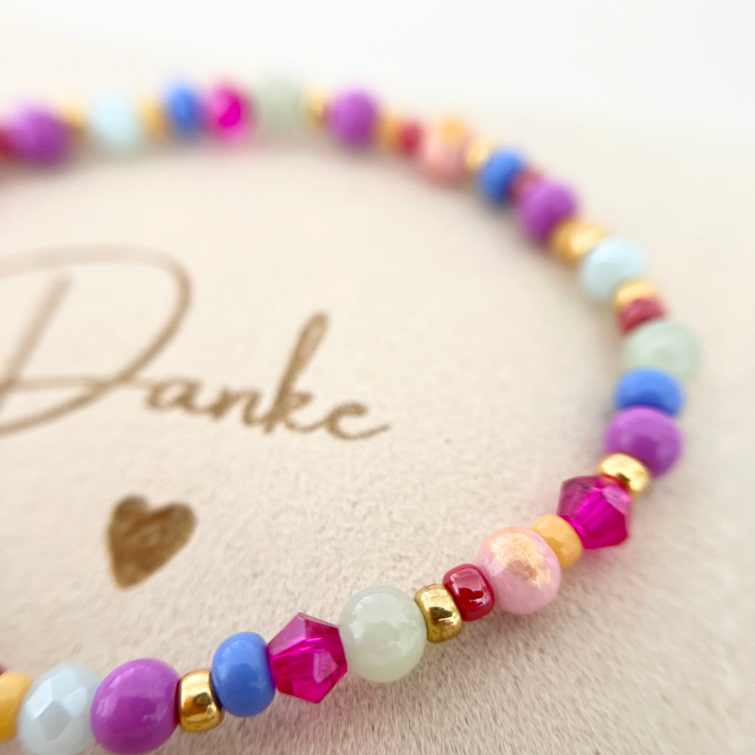 • Handgefertigt aus bunten Glasperlen & Natursteinen – jedes Armband ist ein Unikat