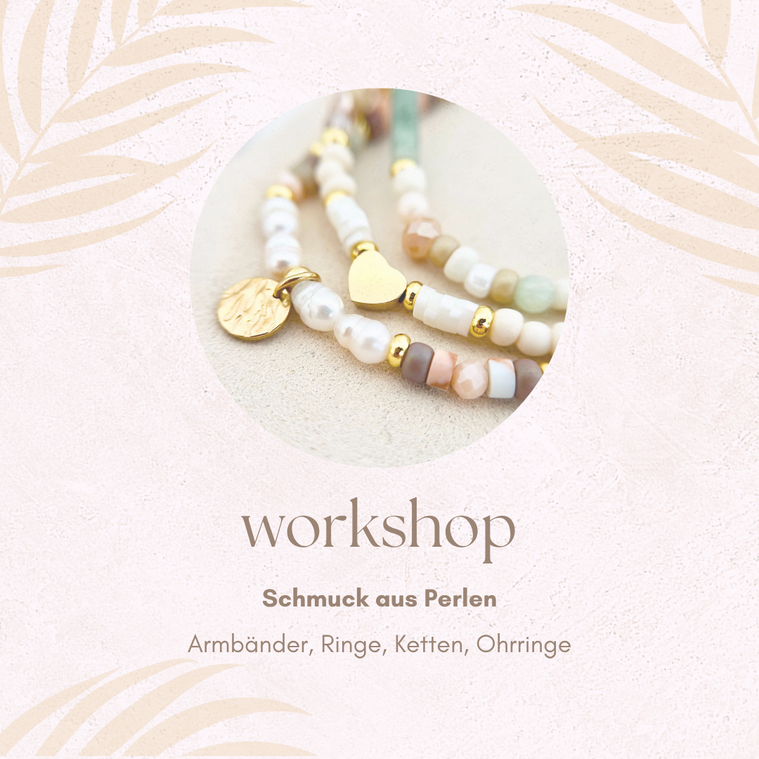 Ob als Erlebnisgeschenk oder kleine Auszeit zwischendurch – buche jetzt deinen Perlenschmuck Workshop und entdecke die Freude am Schmuck gestalten mit Perlen, Stil & Herz.