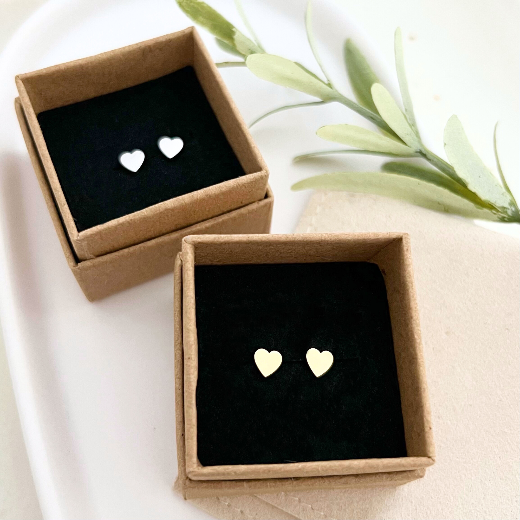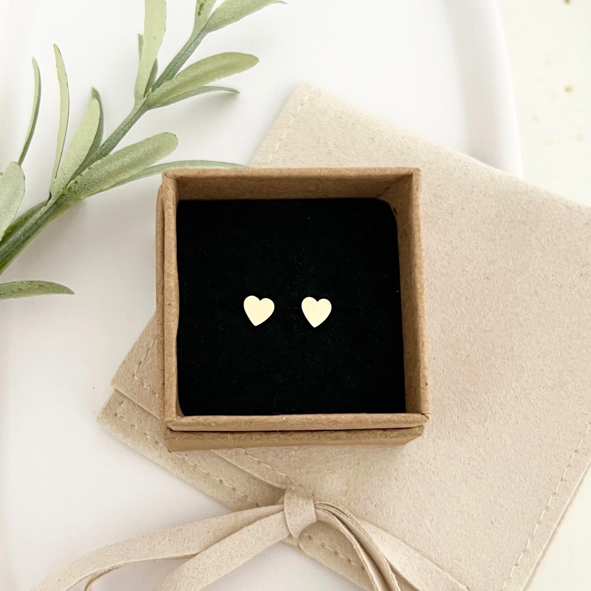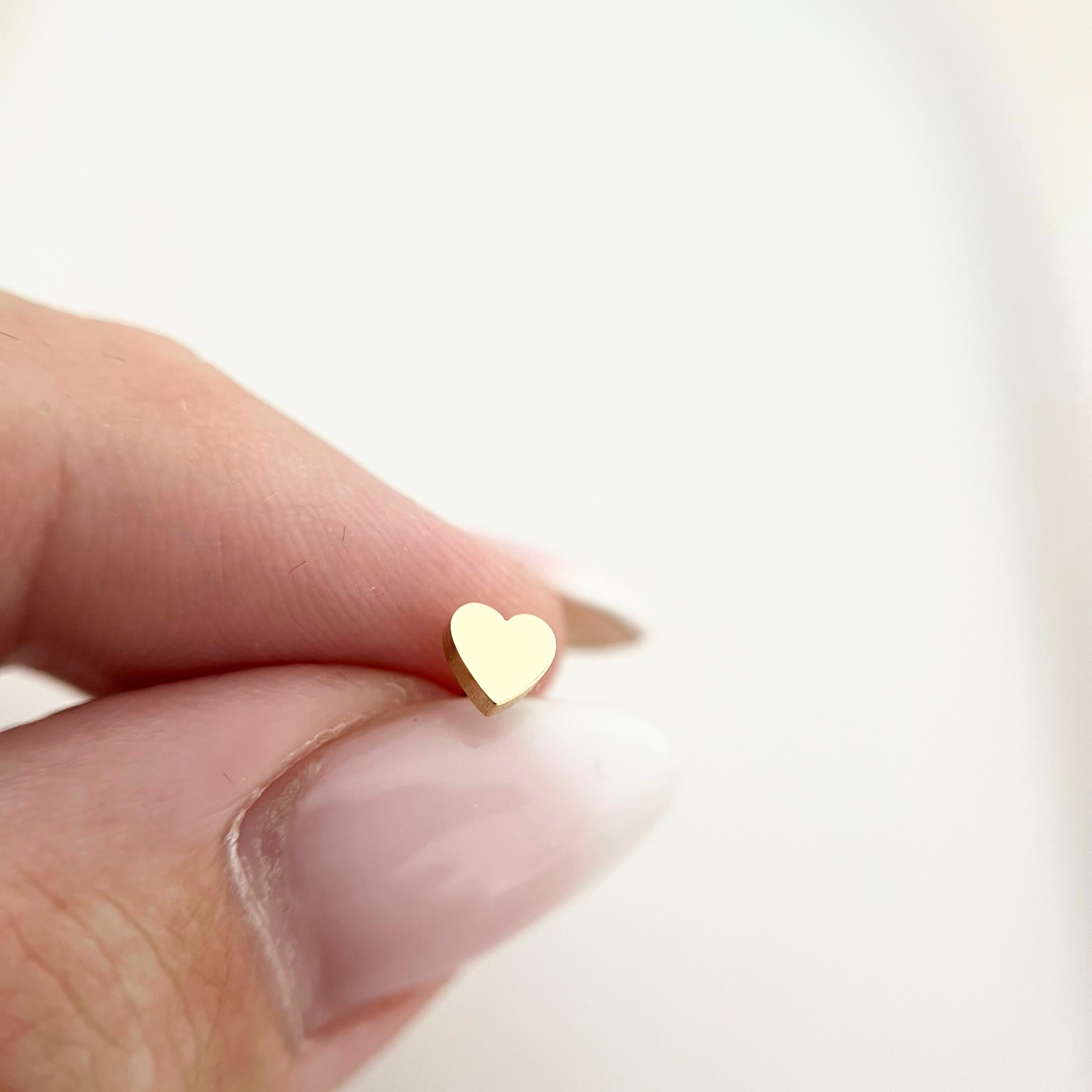 Kleine vergoldete Ohrstecker in Herzform aus Edelstahl. Die Ohrringe haben eine Größe von 5mm und wirken somit filigran, dezent & minimalistisch.