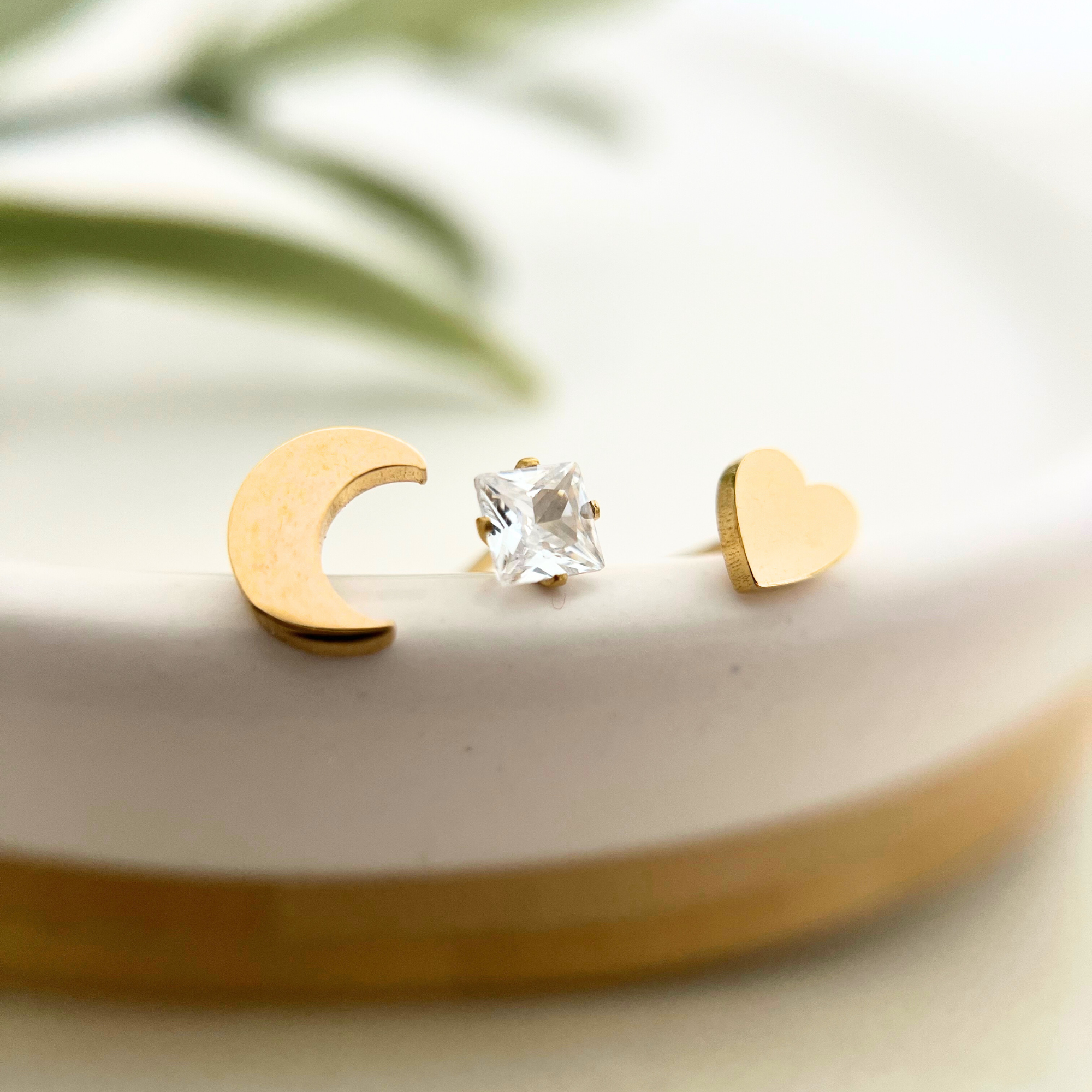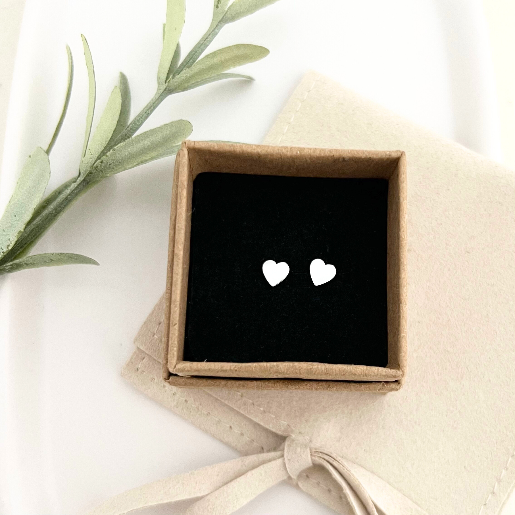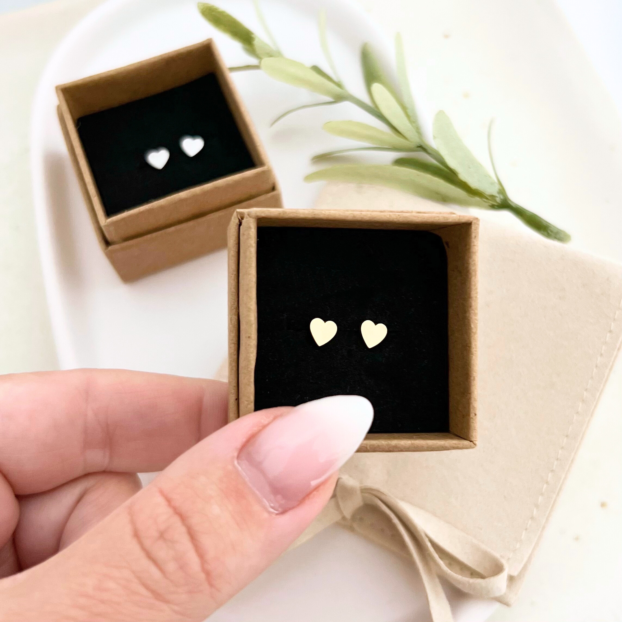 Kleine vergoldete Ohrstecker in Herzform aus Edelstahl. Die Ohrringe haben eine Größe von 5mm und wirken somit filigran, dezent & minimalistisch.